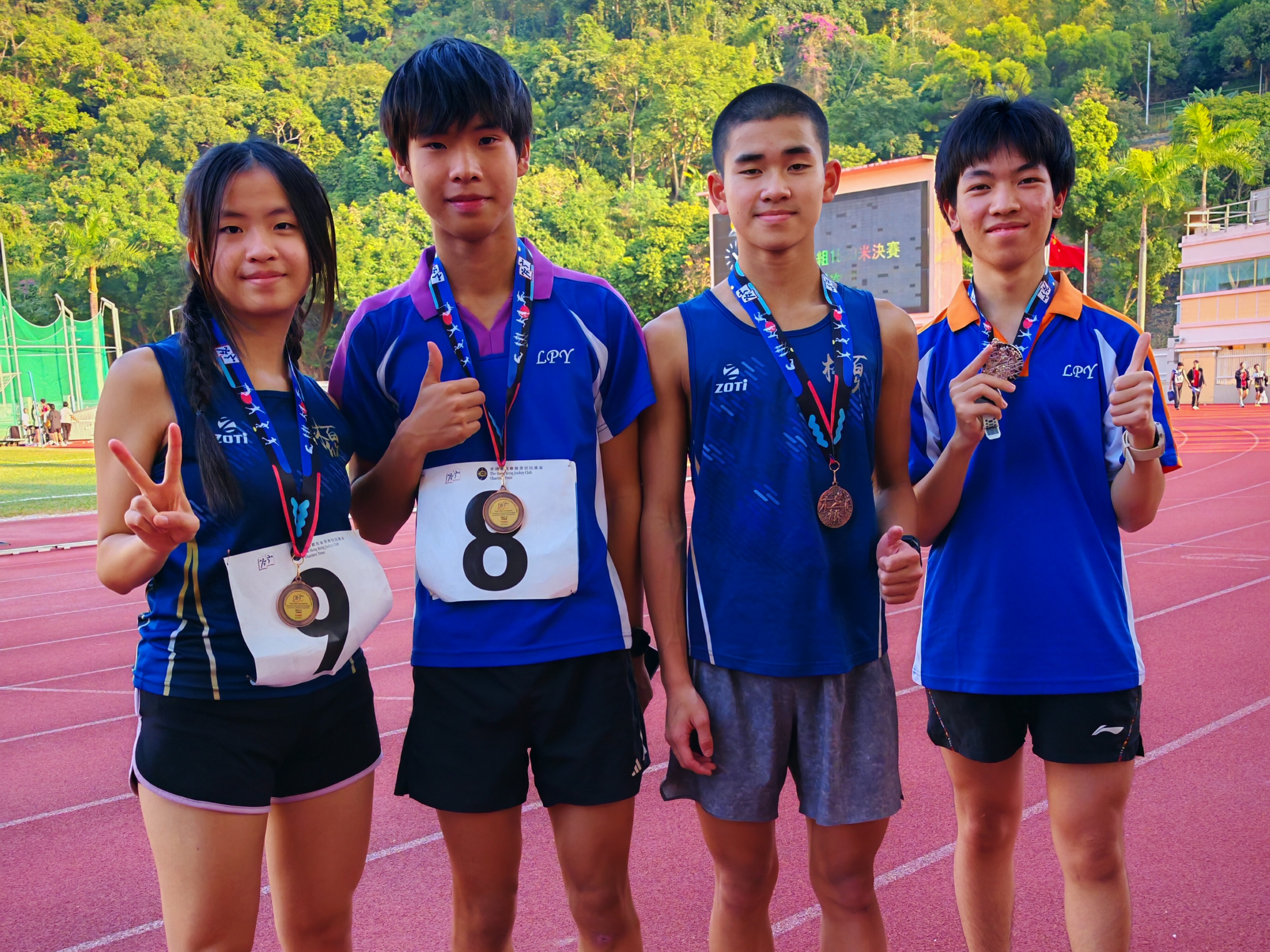 2025年12月3-10日 本校於2025-2026學界田徑賽派出五名同學參與六項賽事,共取得1金1銀3銅佳績,詳請如下:1A鄭靖瀧男丙100米銀牌 3B吳卓翹男乙1500米銅牌、男乙3000米金牌,並破大會紀錄(10'13"58),比舊紀錄快近三秒。 5B李彥林男甲1500米銅牌 5A張善淘女甲1500米銅牌